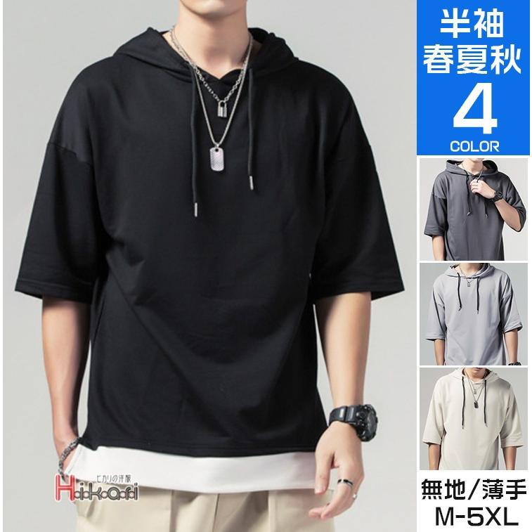 パーカー メンズ おしゃれ 半袖 夏用 薄手 パーカ 5分袖 カジュアル 夏パーカー フード付き 肩落ち 父の日 Ota V Luck 通販 Yahoo ショッピング
